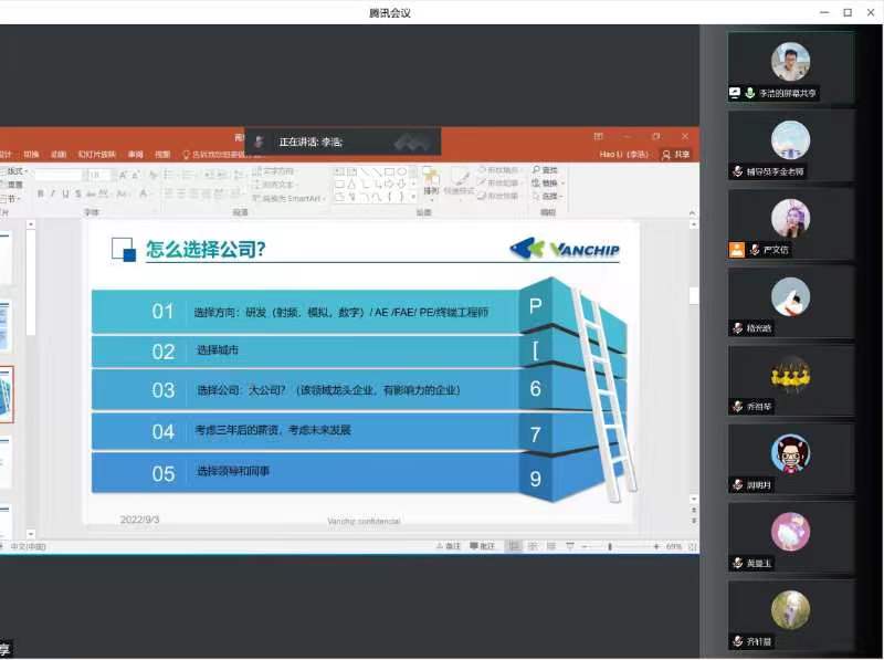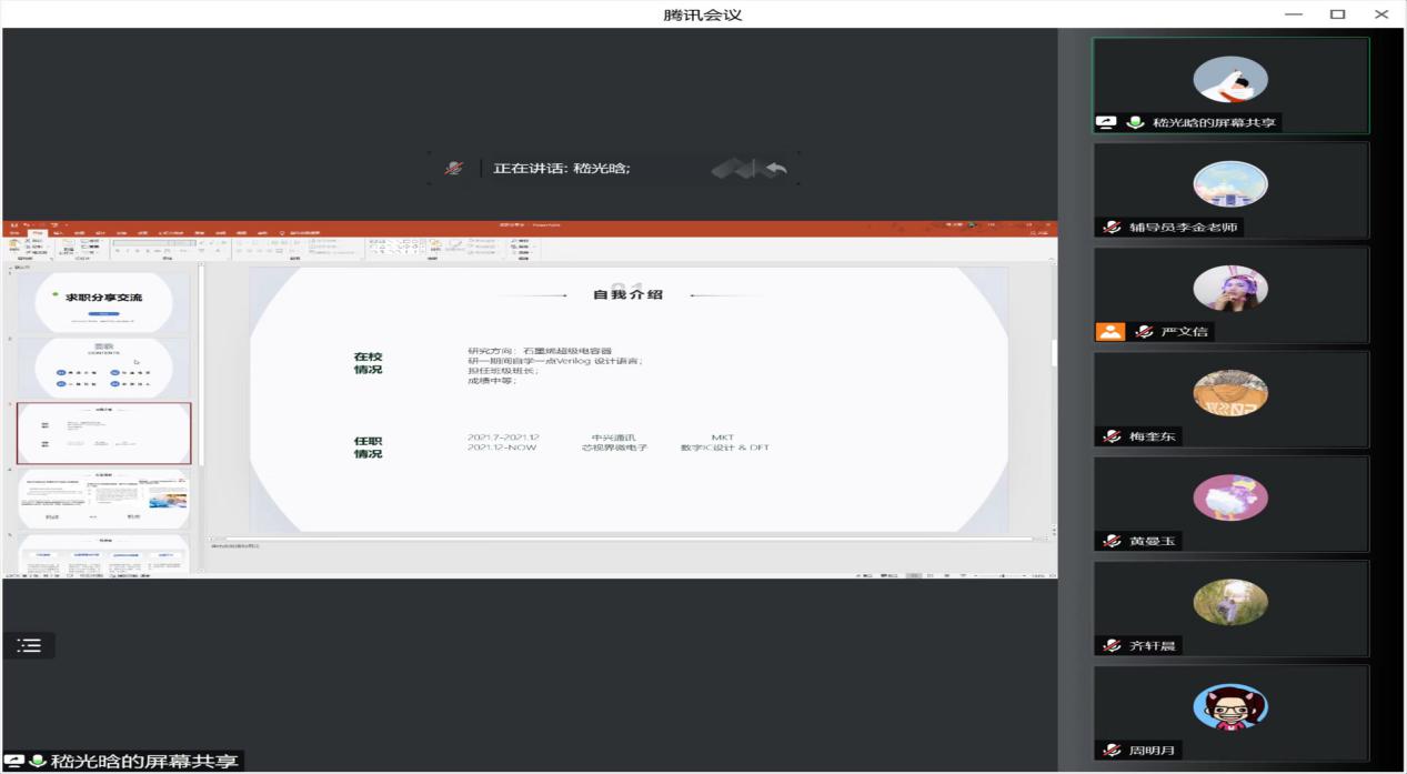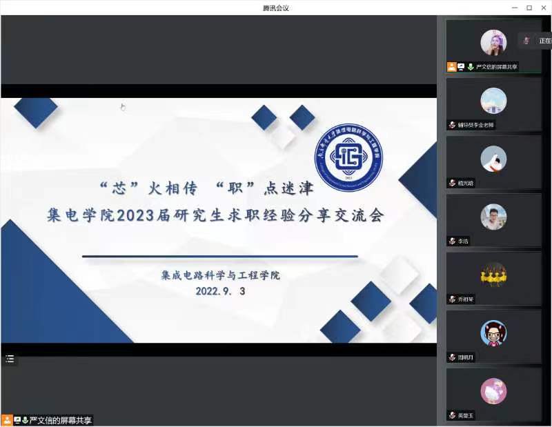 为了帮助开云体育官网 2023届研究生毕业生了解就业政策、提升就业技能,解决求职过程中遇到的困难,9月3日下午,开云体育官网 举办了“芯”火相传,“职”点迷津——2023届研究生求职就业经验分享交流会。分享会邀请了李浩、周明月、齐轩晨、黄曼玉和嵇光晗五位优秀校友作为嘉宾分享就业经验,开云体育官网 党委副书记、副院长乔祖琴书记参加了本次会议,辅导员李金老师及21级、20级200余名研究生参会,会议由严文信同学主持。