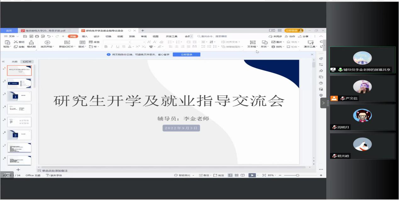 会议开始,乔书记做了就业动员讲话。乔书记阐述了此次就业分享会的目的和重要性,鼓励研究生们结合自身优势做好职业生涯规划,认清当前就业形势,确立合理目标定位,抓住近期就业机遇,希望研究生们可以通过自己的努力找到满意的工作。