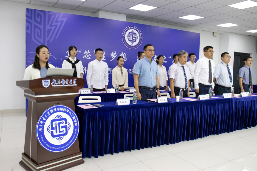 本科新生代表蒋梓莜同学表达了来到南邮求学的激动与喜悦以及对未来南邮学习、生活的美好憧憬,并带领全体新生宣誓——作为集成学子,我们必将初心不改,不负使命,集成梦想,“芯”系未来。