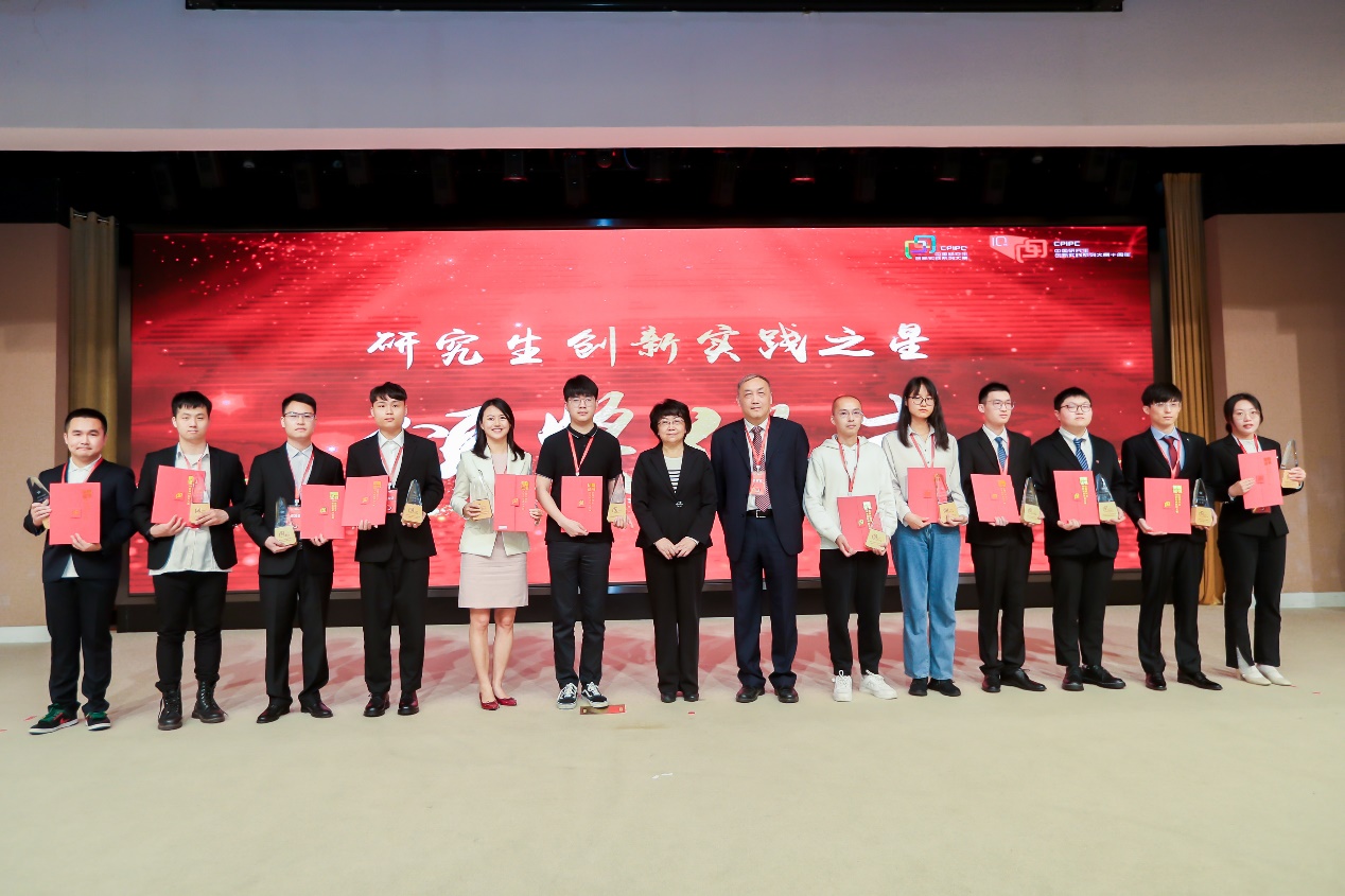 教育部党组成员、副部长翁铁慧为清华大学、复旦大学、上海交通大学、同济大学、武汉大学、中山大学、开云体育官网 等11所高校的12支参赛团队颁发“研究生创新实践之星”奖杯和证书。
