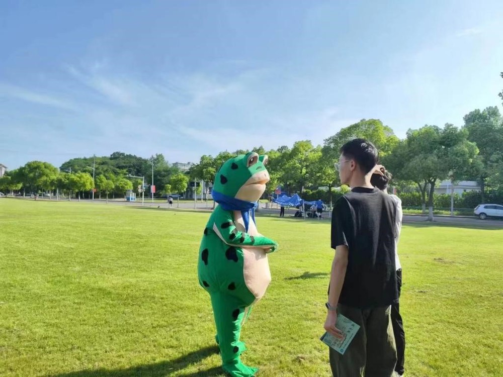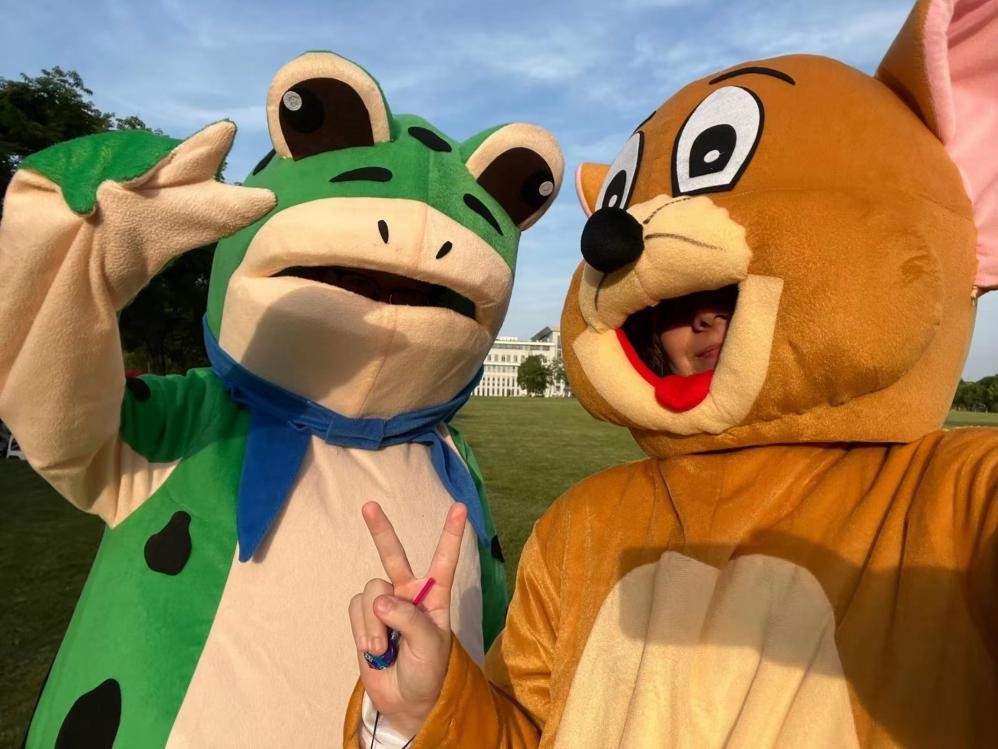 活动还设置了玩偶打卡处,不仅让同学们体验了一把穿上玩偶服的快感,同时也增强了参与同学们的互动感。