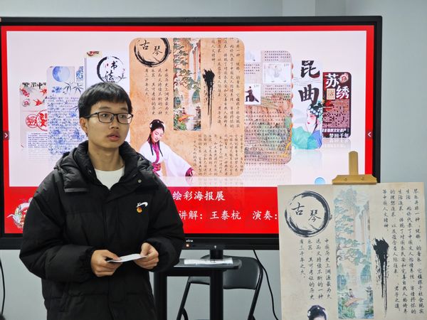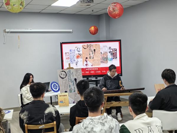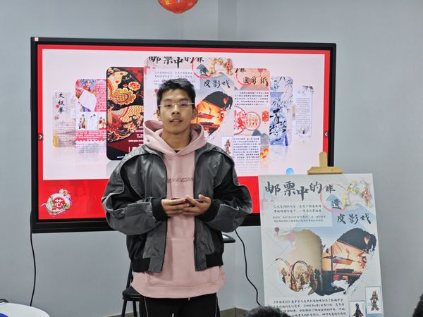 “汇聚梦想,绘彩非遗,我们共同追寻文化的根脉。”活动伊始,支部成员们齐聚一堂,共同欣赏了一场别开生面的非遗海报宣讲。B230301支部成立了“柚梦绘彩海报组”,组长柯奕如和张信国带领组员徐嘉阳、陈浩然、李棋、吴梦盈、刘逸帆共制作了8张“邮票里的非遗”为主题的海报。一幅幅精美的海报,将中国传统文化的瑰宝展现得淋漓尽致。从古老的剪纸艺术到精湛的刺绣技艺,从独特的陶瓷制作到神奇的皮影戏表演,每一幅海报都仿佛是一个生动的故事,引领着团员们走进非遗文化的世界。宣讲过程中,讲解员用生动的语言,向团员们介绍了各项非遗技艺的历史渊源、制作工艺和传承情况。大家听得津津有味,不时发出惊叹和掌声。通过这一环节,团员们对非遗文化有了更加直观和深入的了解,也更加坚定了传承和弘扬非遗文化的信念。