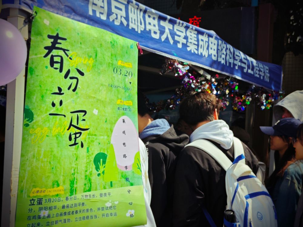 掌握方法后,同学们玩的不亦乐乎,甚至尝试了双手同时立鸡蛋,挑战成功的同学,不仅获得了独此一份的鸡蛋,也获得了我们精心准备的礼品。春风和煦,花红草绿,心情舒畅,立的不仅是鸡蛋,更是南邮学子朝气蓬勃的拼劲,是对新学期的期待与向往。祝大家新学期顺顺“立立”!
