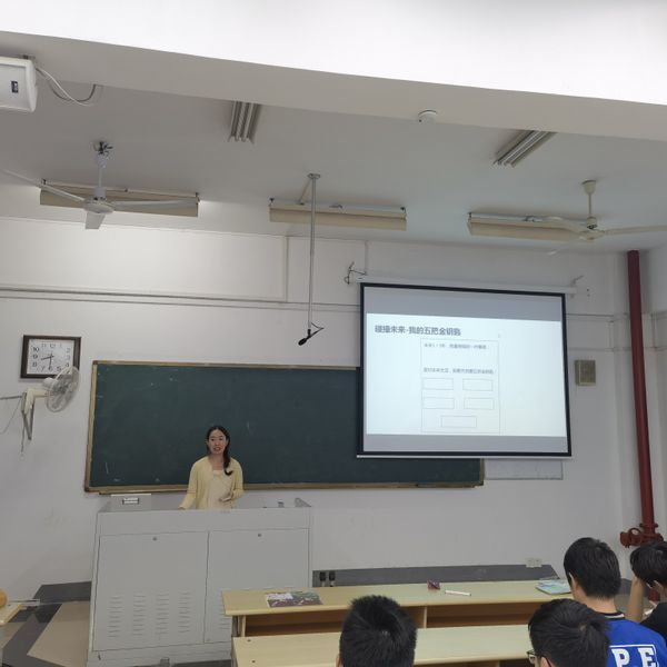第二个游戏是“我的五把金钥匙”。同学们在训练纸上画下五把金钥匙,想象自己是个资源宝库,选择五样资源,可以是个人品质、珍惜的人、兴趣爱好等,作为钥匙去打开自己的未来。同学们在纸上写下了自己美好的品格、健康的好习惯、珍惜的家人……他们在交流中增强信心,互相参考,相互启发。