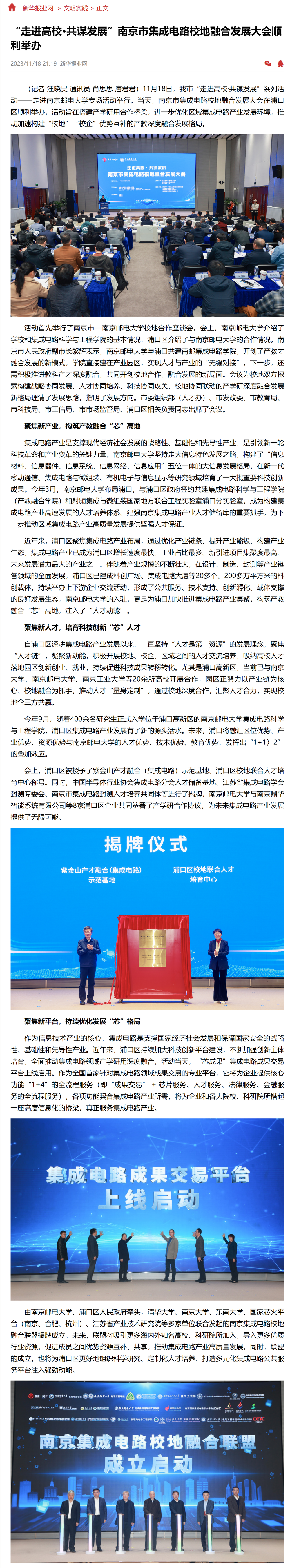 【新华报业网】“走进高校·共谋发展”南京市集成电路校地融合发展大会顺利举办