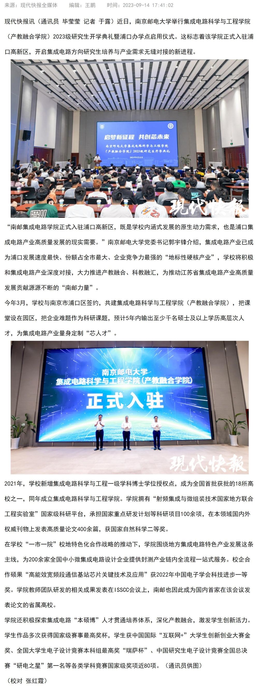 【现代快报全媒体】量身定制“芯人才”!南邮集成电路开云体育官网 正式入驻浦口