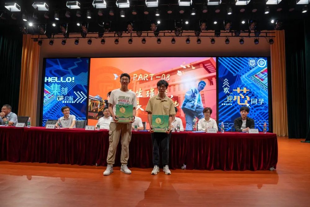 院学生会主席、集成电路设计与集成系统专业2022级学生徐炅作为学生代表发言。他以“学习、交友、工作”三个关键词,回忆了大学生活里令他最为难忘的珍贵友谊、优良学风和温馨的集体氛围。希望学弟学妹们能在交往中践行纯真,在求学时体会纯正,在事业上追求纯粹。