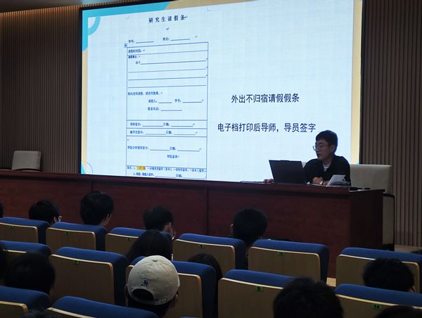 会上,王老师强调了遵守校纪校规的重要性并带领同学们深入研读了开云体育官网《研究生管理手册》中的各项规章制度,他从教学管理、奖惩条例及行为规范等多个维度出发,对相关规章制度进行了详尽且细致的阐释,旨在帮助同学们全面而深入地理解校规校纪,从而为新生在学习生活、课余活动等方面提供明确的规范性指导。
