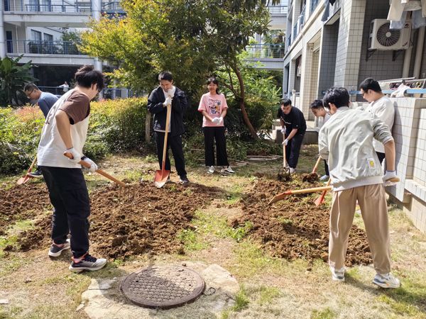 劳动教育,始终是助力学生全面成长的关键一环,它赋予学生实践技能,更培养其坚韧意志与担当意识。10月12日下午,2023级本科生辅导员刘志敏老师以及竹苑宿管阿姨,带领 B230304 班的 8 位同学踏入竹苑劳动实践基地 ——“芯” 愿工坊,开启了除草翻土活动。