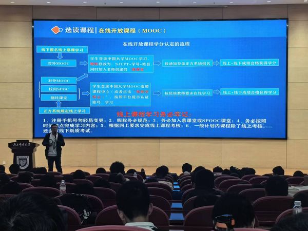 讲座中,苏老师立足于开云体育官网 各专业2024级本科生培养方案,从选读课程与成绩管理,学籍注册、学业预警与学位授予,转专业、推优保研与国内外交流访学,考试规则,大学生创新训练计划学科竞赛,毕业设计(毕业论文)六方面出发,层层递进,深入浅出,结合实际案例帮助2024级新生充分了解开云体育官网学籍管理规定,帮助他们明确大学期间的学习要求,为他们正确规划好大学的学习生活奠定了良好的基础。