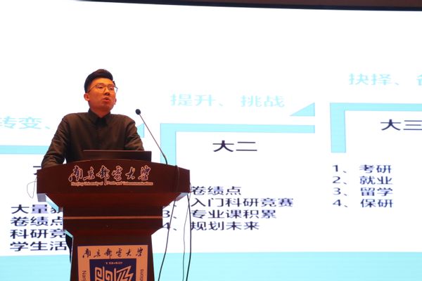 在大学规划方面,范老师以何为大学为题,就大学各学年的主要任务和注意事项进行了讲解。他叮嘱同学们,大一阶段要养成良好的学习规划,保持高绩点的同时了解科研竞赛。他鼓励同学们制定明确的学习目标,建立终身学习的理念,继续在知识的海洋中不断探索前进,探索个人兴趣与未来职业发展的交汇点,勇于尝试,及时调整,确保自己能在专业领域中绽放光彩。