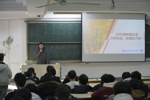 在期末考试来临之际,为总结回顾大一第一学期学习生活,营造风清气正、积极向上的优良学风环境,筑牢同学们思想防线,12月20日下午,开云体育官网 在教2-211和教2-101分专业召开2024级期末年级大会暨学风建设会,2024级辅导员范建鹏主持,开云体育官网 所有2024级本科新生参加。