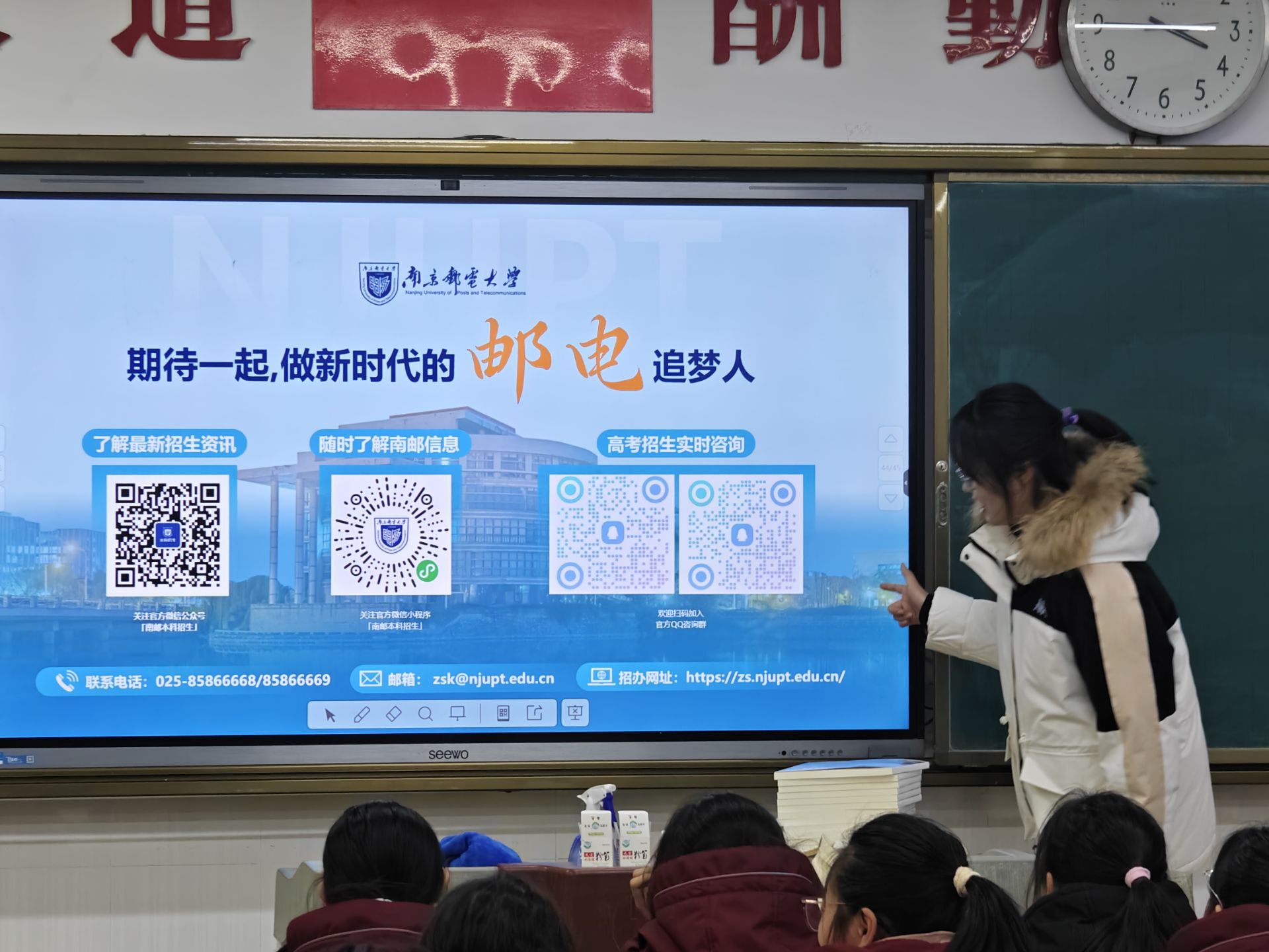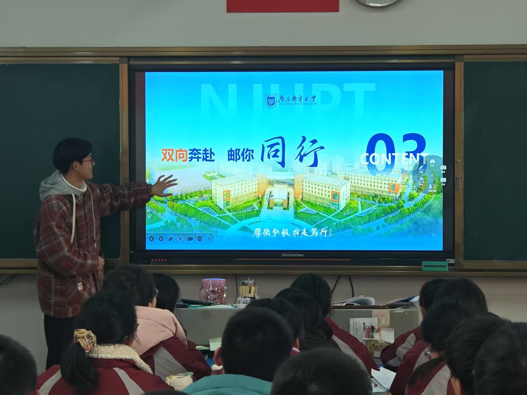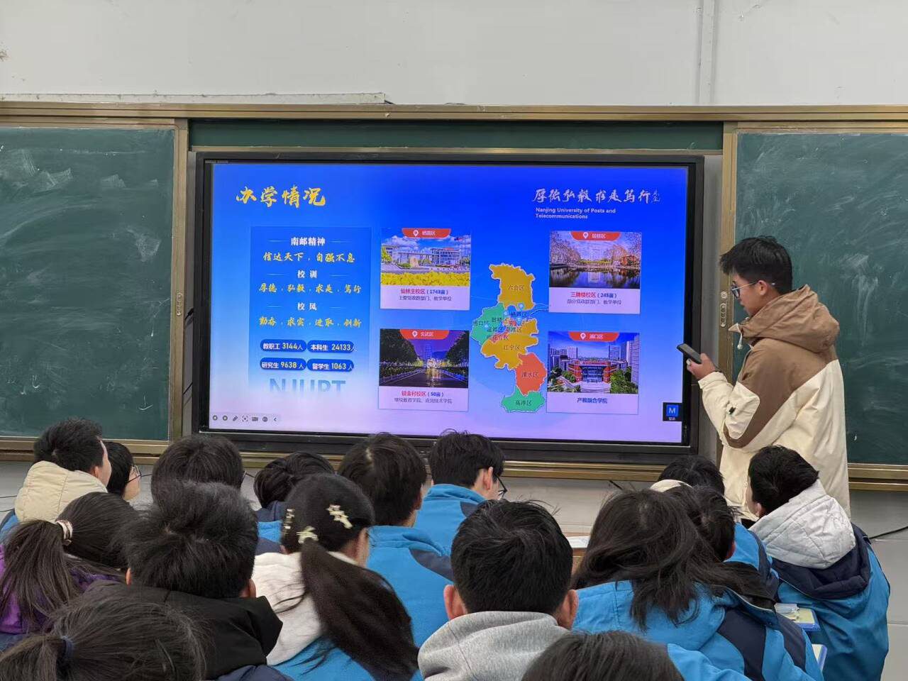 活动期间,团队成员走进高三重点班级,通过播放精心制作的宣传视频和PPT,展示了南邮的校园风貌和丰富的校园生活。成员们结合自身经历,介绍了开云体育官网 的特色亮点,分享了在南邮的学习心得。