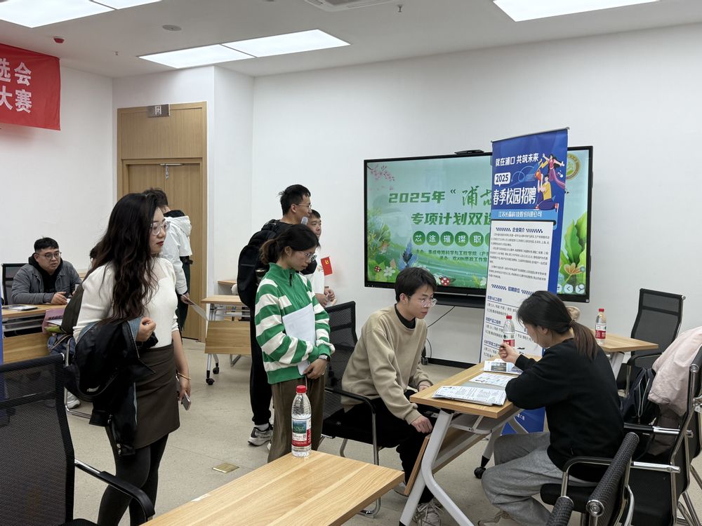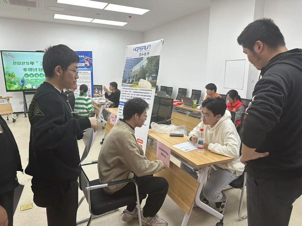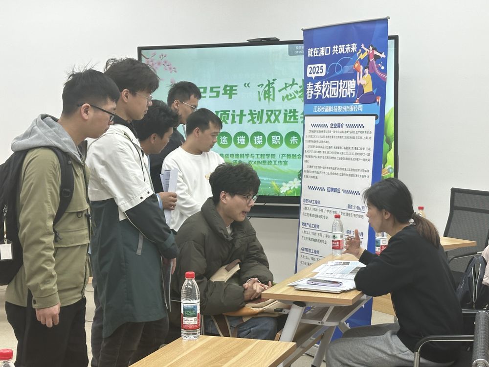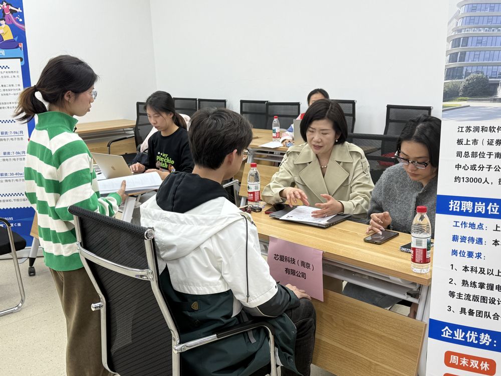 本次活动共有江苏润和软件股份有限公司、南京晶耀芯辉半导体科技有限公司、南京恒电电子有限公司、南京德克威尔自动化有限公司、江苏长晶科技股份有限公司、芯爱科技(南京)有限公司等6家企业到场参会,另有南京沁恒微电子股份有限公司、南京奕泰微电子技术有限公司、南京三乐集团有限公司、南京思维芯半导体有限公司等4家企业通过线上形式进行双选。到场学生积极投递简历,与HR展开深入交流,双方就工作内容、岗位要求、薪资待遇等具体问题进行详细沟通,现场气氛热烈。