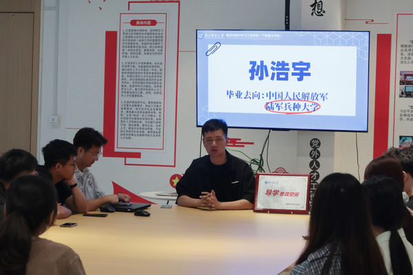 孙浩宇学长毕业去向是就职于中国人民解放军陆军兵种大学的军队文职。他为大家分享了自己的求职经历,考取公职人员岗位时,强调实践积累经验,明确考公为长期投入,需充分了解后再决策;最后孙浩宇学长强调无论是选择哪条就业路径,均需坚定深耕、保持心态平和,重视身心健康。