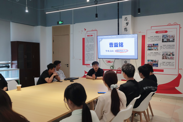 江蕴宇学长毕业去向是就职于苏州电信。他叮嘱同学们就业不要分心,盯紧一条路。强调面试表现以及如何及时复盘面试中自己的问题或优势等几个方面进行讲解。最后学长鼓励未就业同学主动向学长学姐请教,弥合信息差。