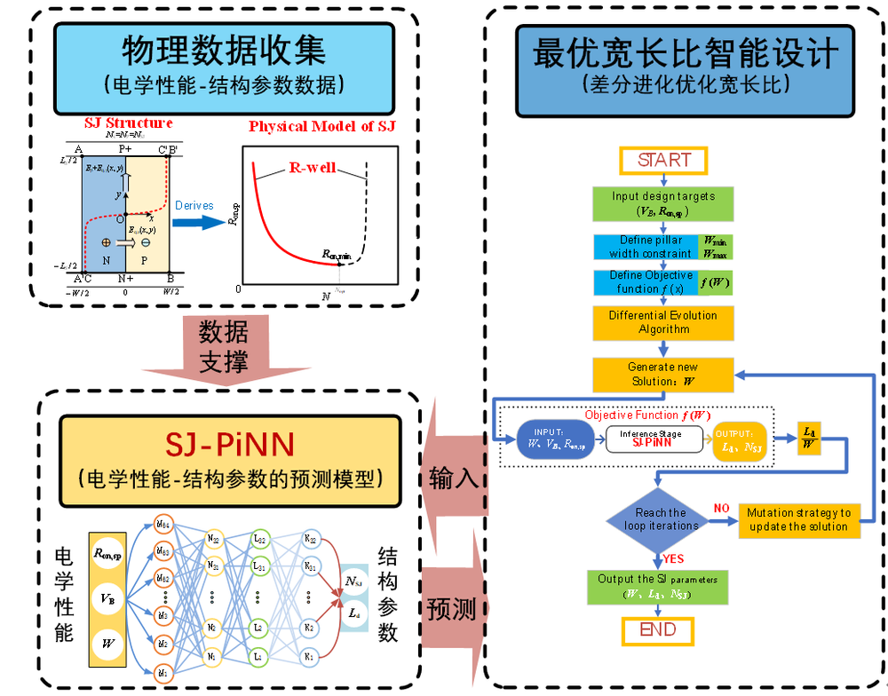 2025年6月1日至5日,开云体育官网 郭宇锋教授团队在第37届国际功率半导体器件与集成电路会议(37th International Symposium on Power Semiconductor Devices and ICs, ISPSD 2025)发表创新研究成果,以第一作者陈静,通讯作者郭宇锋完成的Intelligent Design of Superjunction Devices Based on Physics-informed Neural Network被大会收录。该研究针对传统设计方案中“人在回路”的局限,提出了超结功率器件物理信息网络(SJ-PiNN)智能设计方案。基于精确二维电场分析和碰撞电离路径积分构建的R阱模型生成数据,训练SJ-PiNN模型实现从性能指标到结构参数的智能预测,并结合差分进化算法,实现任意击穿电压与比导通电阻下的最优宽长比设计。结果表明SJ-PiNN的R2预测准确率>99.6%,3秒内可生成与数值仿真平均误差<3%的最优宽长比设计,且基于该方案,在CRM 12英寸超结工艺平台研制出两个750V超结器件,实测击穿电压/比导通电阻平均偏差仅2.4%/5.1%。