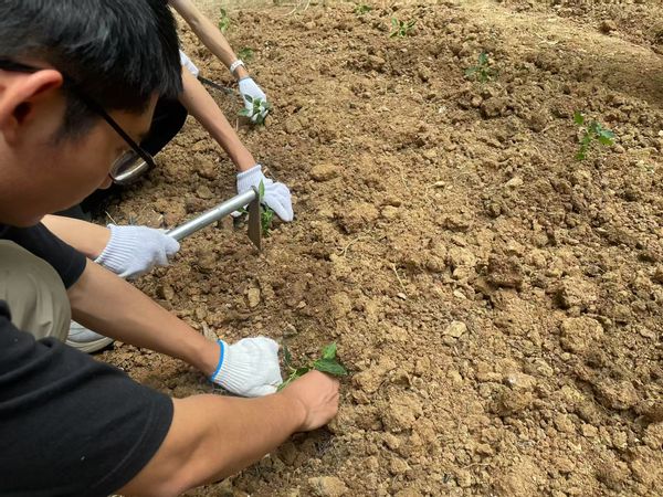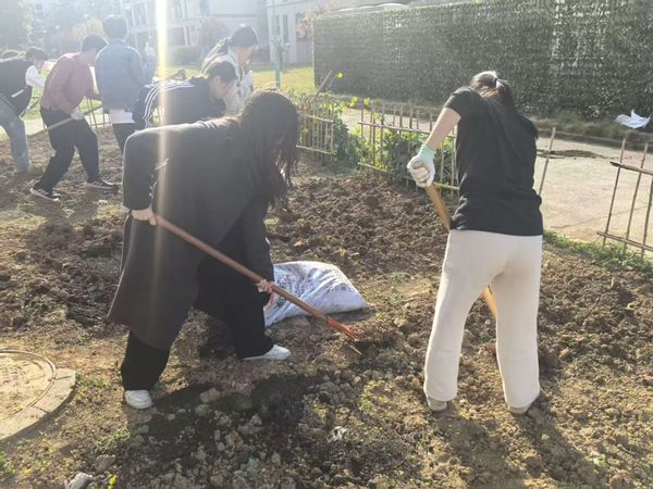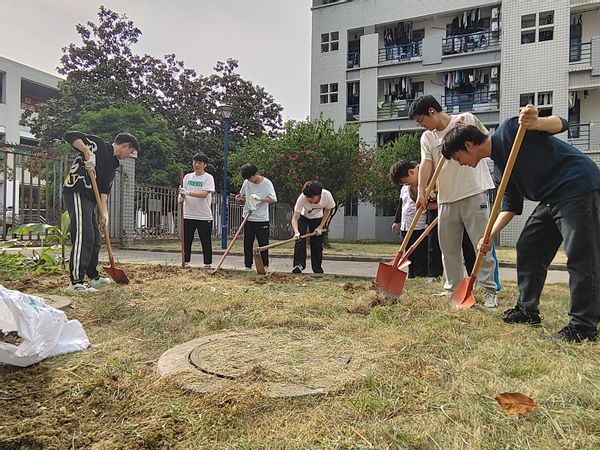 活动伊始,各班同学轮流上阵,手持锄头、铁锨对荒地进行开垦。从未接触农具的“芯青年”们,在宿管阿姨指导下学习翻土技巧,清除碎石杂草,平整垄沟。