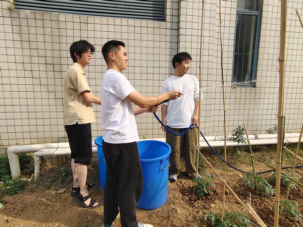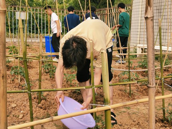 每周由不同班级负责浇水、施肥、除草。同学们学习根据作物长势调整养护方案:西瓜藤需追施钾肥,黄瓜叶要防治蚜虫。烈日下蹲地除草的艰辛,让同学们深刻体会到“粒粒皆辛苦”的含义。辅导员老师也加入劳动队伍,与学生边劳作边畅谈“劳动精神与科研精神的共通性”。