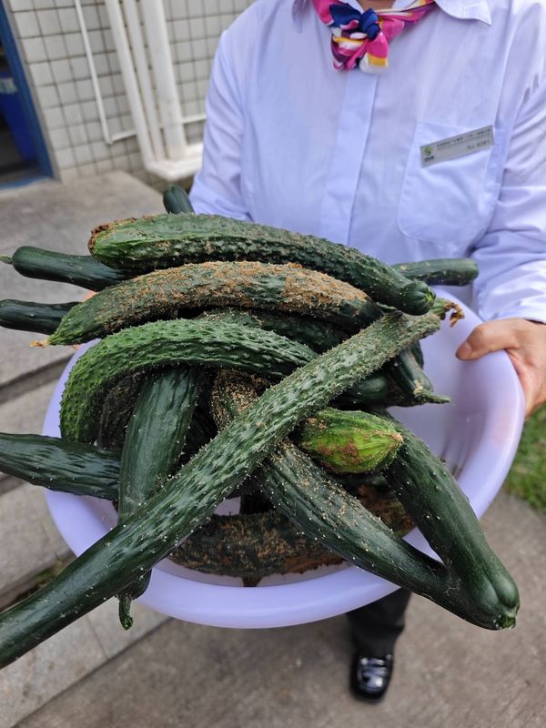 期末时节,瓜果陆续成熟。翠绿的黄瓜挂满藤架,辣椒丛中红绿交错。一名参与种植的学生拿着黄瓜感叹:“从焊电路到种蔬菜,我们不仅收获了果实,更懂得了‘匠心’需要时间的沉淀。”