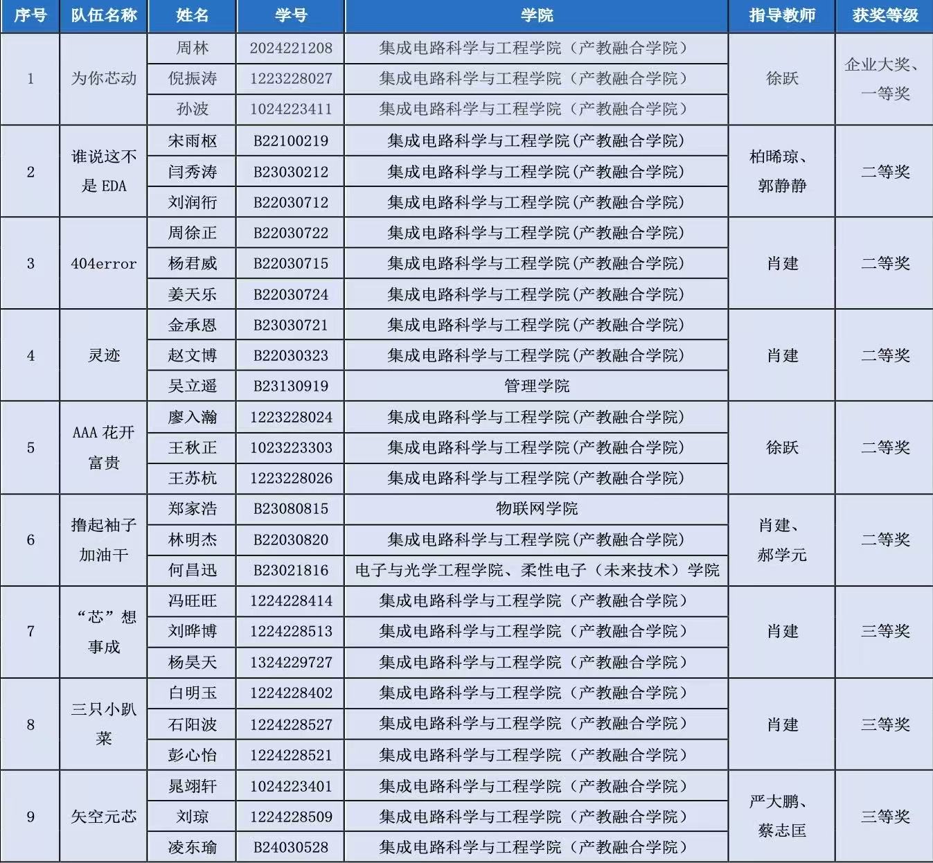 开云体育官网 第九届集创赛全国总决赛获奖名单