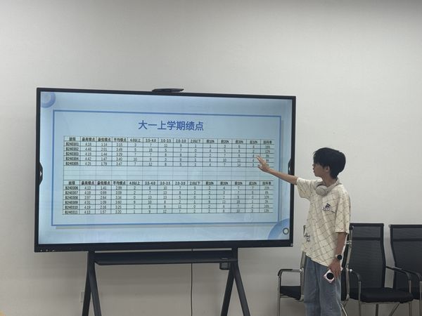 1、“数据透视”班级成绩分析: 班长对大一学年成绩进行多维度、精细化分析,通过横向与纵向对比,帮助学生精准定位学业短板与优势,明确个人在年级和班级中的坐标,为后续学习规划提供科学依据。