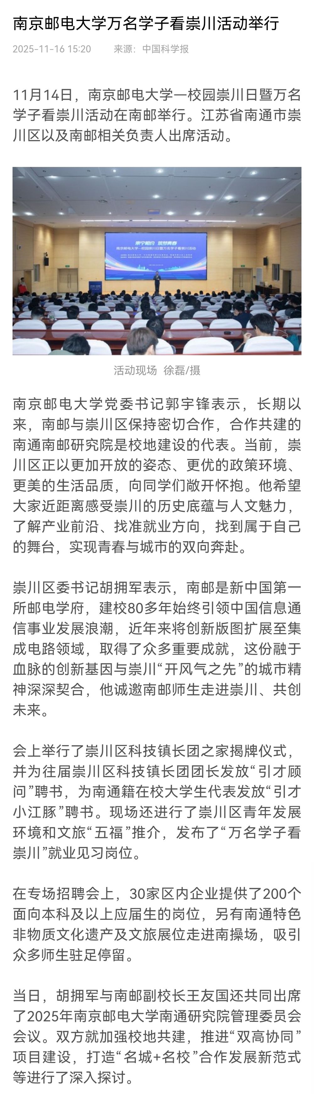 【科学网】开云体育官网 万名学子看崇川活动举行