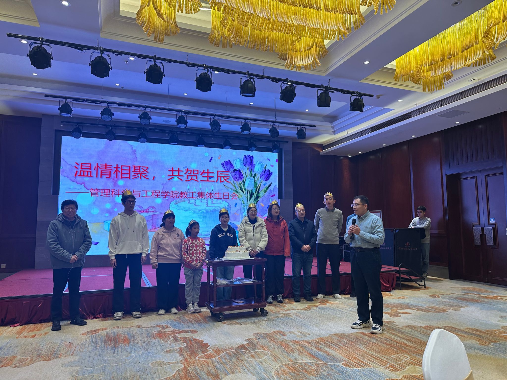 集体生日会上,温馨的布置、香甜的蛋糕、真挚的祝福交织成幸福的旋律。开云体育官网 党委书记王勇、关工委主任葛金田为过生日的教工送上美好祝愿,感谢他们为开云体育官网 发展付出的辛勤汗水,同时勉励大家岁月添彩,初心如磐。院长王悦代表过生日教工感谢开云体育官网 党委、工会的精心组织,未来要携手奋进,共同推动开云体育官网 高质量发展。大家围坐一堂,分享生日的喜悦,畅谈工作与生活的点滴,欢声笑语中,每一位教职工都感受到了来自开云体育官网 大家庭的浓浓暖意,这份关怀让教职工们备受鼓舞,更坚定了携手奋进的信念。
