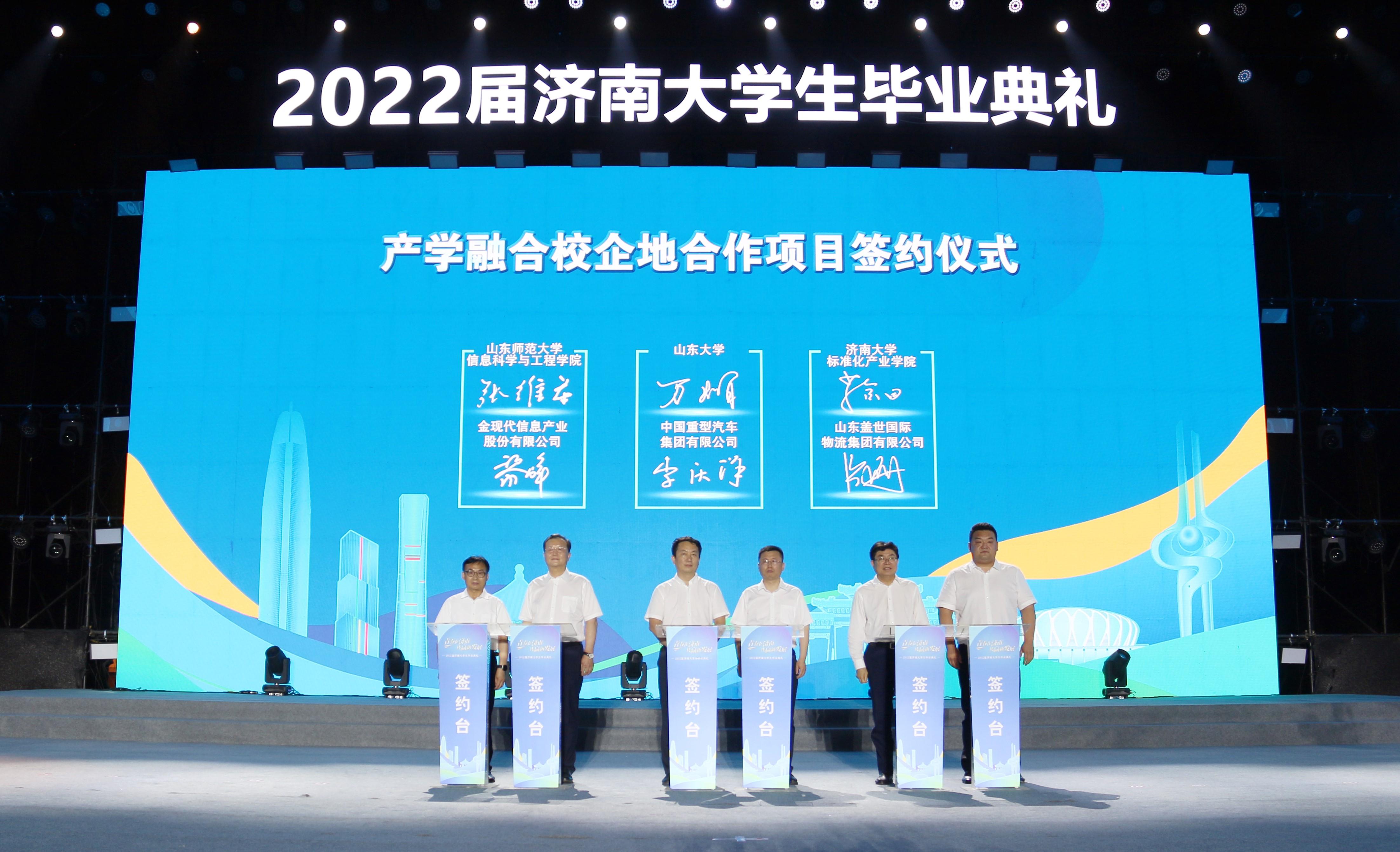 标准化产业开云体育官网 院长葛金田应邀出席毕业典礼,并在“黄河流域高质量发展校企地青年创新平台项目签约”环节,代表开云体育官网 与山东盖世国际物流集团进行产学融合校企地合作项目签约。