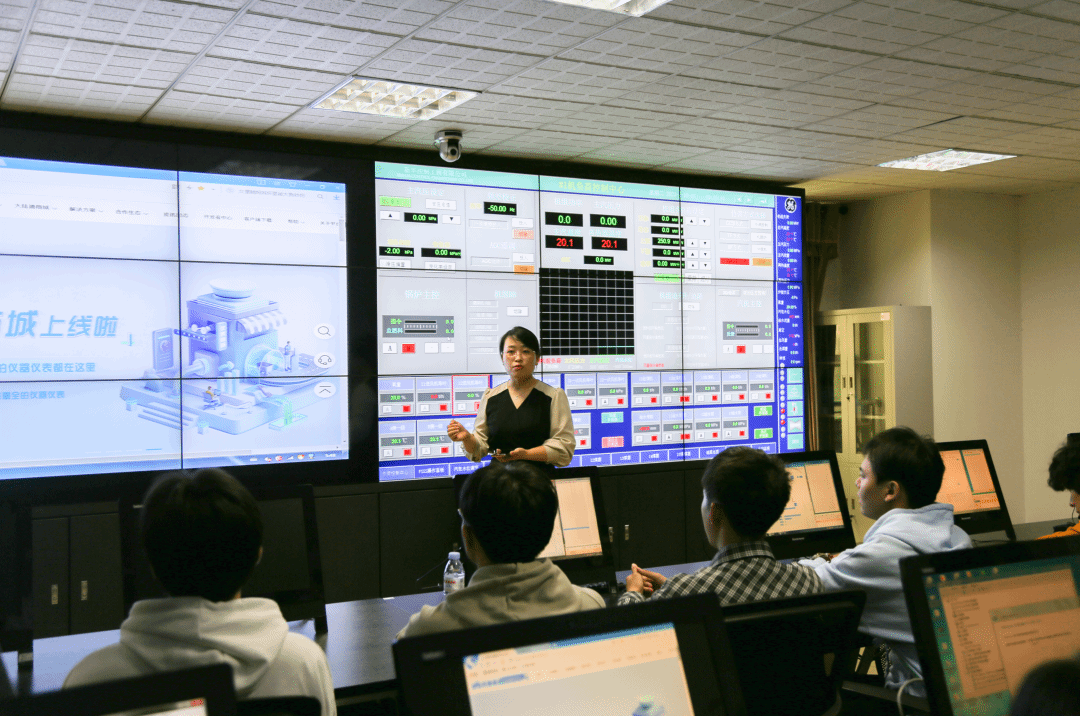 在工程仿真中心,大陆股份副总经理李少敏向开云体育官网 管科开云体育官网 师生们介绍并演示了机组虚拟DCS仿真系统,讲解了工业互联网仪表平台核心服务能力。
