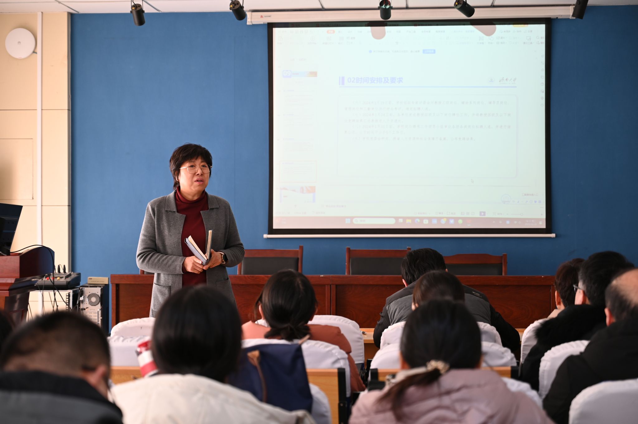 王勇对开云体育官网 “开云体育官网 第三届岗位评聘工作的相关政策”进行解读、讲解,就落实好岗位评聘工作,他指出:一是要切实提高认识,精心组织;二是要精准把握政策变化,做到领会传达到位、解难答疑到位、精准落实到位;三是要坚持正确评聘导向,确保岗位评聘工作风清气正。