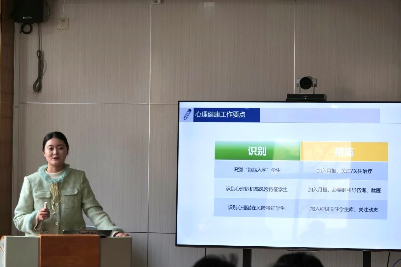李可心作了题为《学生心理危机识别及谈心谈话技巧》的专题培训,从心理工作要点、心理问题学生谈心谈话技巧、心理危机识别干预三个角度,介绍了做好大学生心理工作的技巧方法,并结合具体案例,向老师们介绍了如何做好心理问题学生谈心谈话工作。