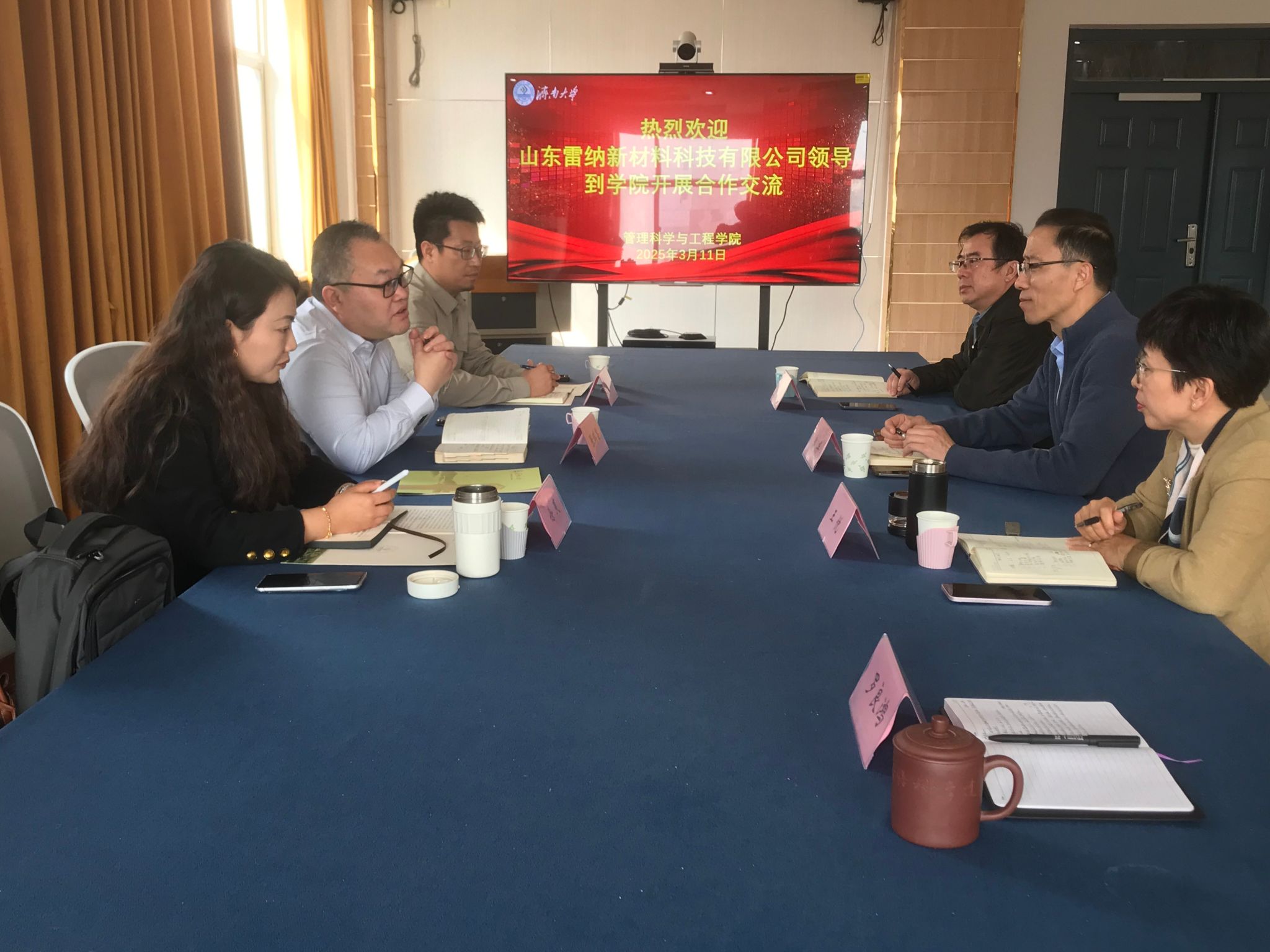 3月11日上午,山东雷纳新材料科技有限公司总经理张瑞昌携销售总监王伟、运营总监徐爽到开云体育官网 交流座谈,开云体育官网 党委副书记郭华、副院长王悦、院长助理常相全出席会议。会议由副院长王悦主持。