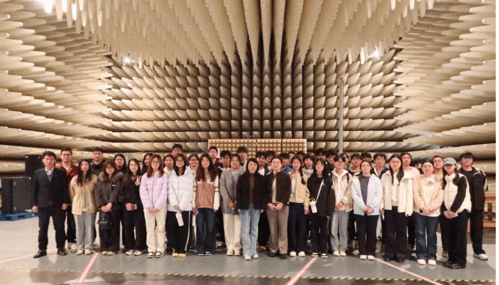 师生还一同来到了极具科技感的“十米法”电磁兼容实验室,技术人员介绍了十米法电波暗室的工作原理,同学们也更加直观地理解了电磁兼容标准如何保障电子设备在复杂电磁环境中稳定运行。最后,高翠玲主任为师生带来以“质量基础设施的概述及实践——以纺织服装为例”为主题的精彩讲座,系统阐释了质量基础设施的内涵与实践应用。