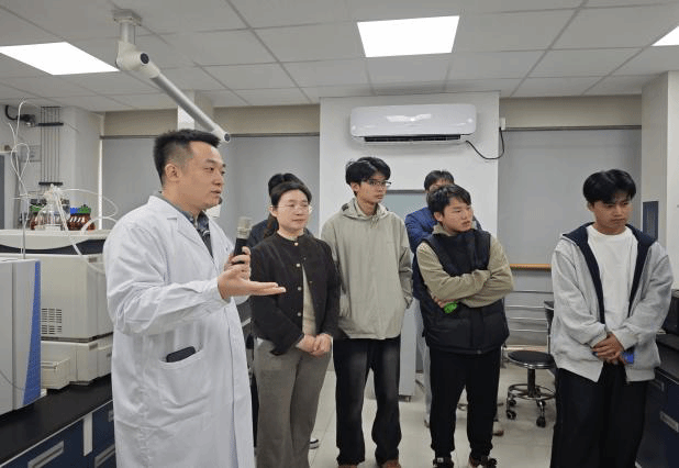 在服装有机检测实验室,师生们近距离驻足,细致观察各类精密检测仪器的运转流程,直观见证标准化检测技术如何以严谨的流程与精准的数据分析,为服装类产品质量构建起坚实可靠的 “防护屏障”。随后走进食品检验研究所光谱实验室,专业检测设备通过科学分析食品中的有害与有益金属元素含量,以标准化的检测手段为食品质量安全筑起了一道不可或缺的“安全防线”。在阻隔实验室,师生们了解到纸杯因对酒精阻隔能力弱不宜盛酒,而玻璃陶瓷材质相对稳定,这一细节体现了材料标准对使用场景的精准规范;同时,超薄膜使用限制的相关研究,也彰显了标准在环保领域的前瞻布局。