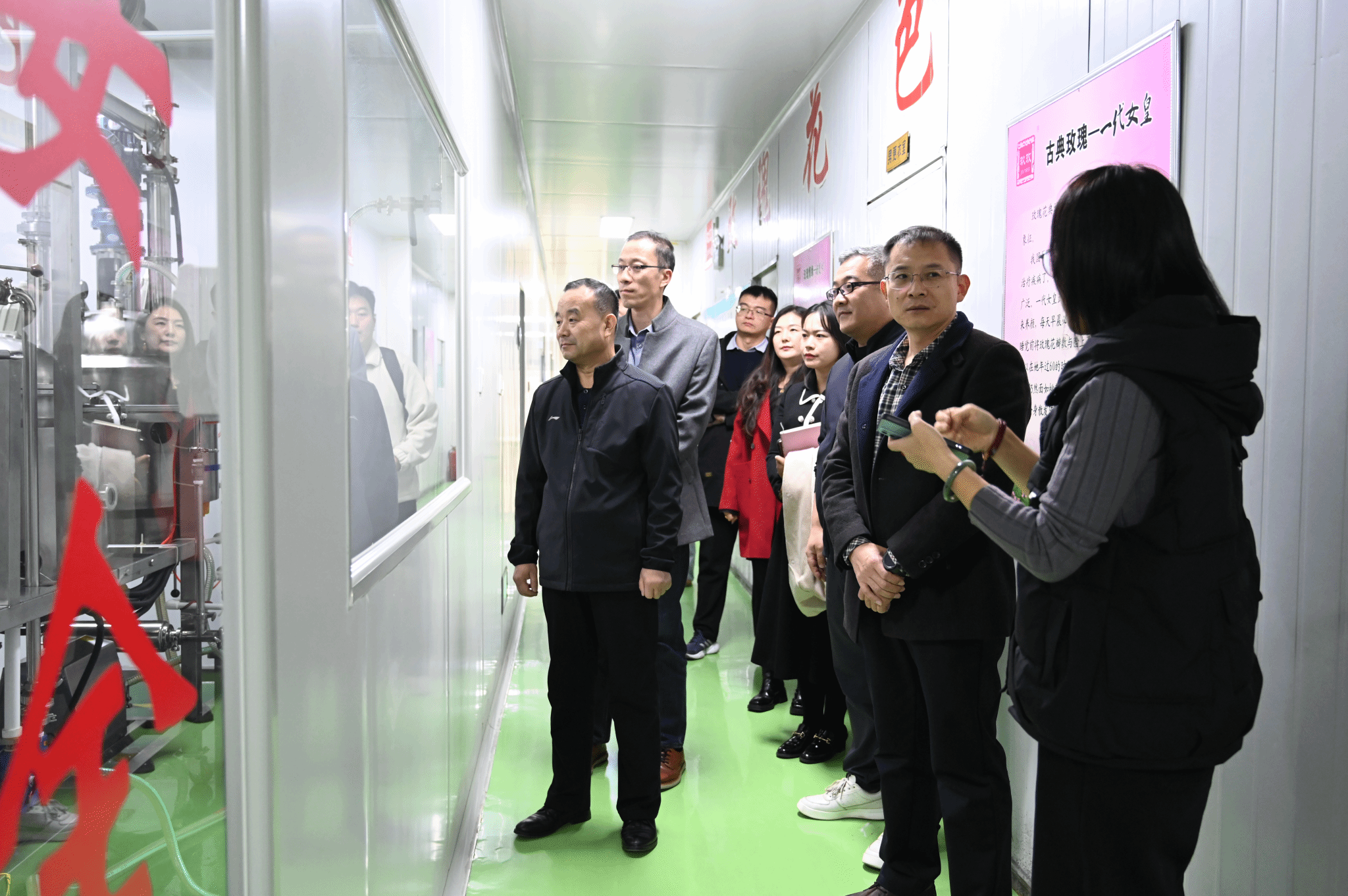 在济南玖玫玫瑰制品有限公司,调研人员了解了“玖玫”牌玫瑰花冠、玫瑰相关化妆品、保湿霜等产品的制造、加工、生产的过程。与企业负责人就产品经济发展、产业链加工升级改造、毕业生就业需求等问题进行深入沟通交流。在济南紫金玫瑰股份有限公司,调研人员与“巾帼有为”民营企业家秦庆燕进行深入交流,详细了解了平阴玫瑰与阿胶产业的发展历史,特别是“好品山东”紫金玫瑰鲜花饼的生产加工过程。秦庆燕曾是一名下岗女工,但凭借自己的创新意识和大爱情怀,逐步将企业做大做强,调研人员对她的奉献精神和创新精神表示由衷地敬佩。在山东华玫生物科技有限公司,调研人员详细了解了华玫生物的数字化转型过程,特别是企业将数字化运营平台应用在先进的生产加工设备上,支撑生产车间智能化改造,打造玫瑰花制品智能制造等场景的过程。