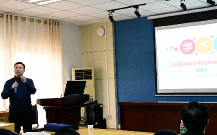 山东财经大学聂彤彤教授以《贝叶斯网络在供应链风险与韧性建模中的应用》为题作报告。聂教授以“VUCA”时代为背景,指出现代供应链存在高复杂性、高不确定性、高脆弱性特征,面临全球化网络耦合、精益化管理柔性削弱、突发事件冲击三重风险,且风险具有“连锁效应”,传统静态模型难以应对。他解析供应链韧性的本质,强调其包含稳健性、恢复力与主动适应能力,目前已转向模型化、量化研究。随后,他介绍贝叶斯网络的理论基础(贝叶斯公式、条件概率关系、DAG结构)与应用优势,结合供应链中断预警、供应商选择、库存优化案例,演示建模方法,帮助师生直观理解。