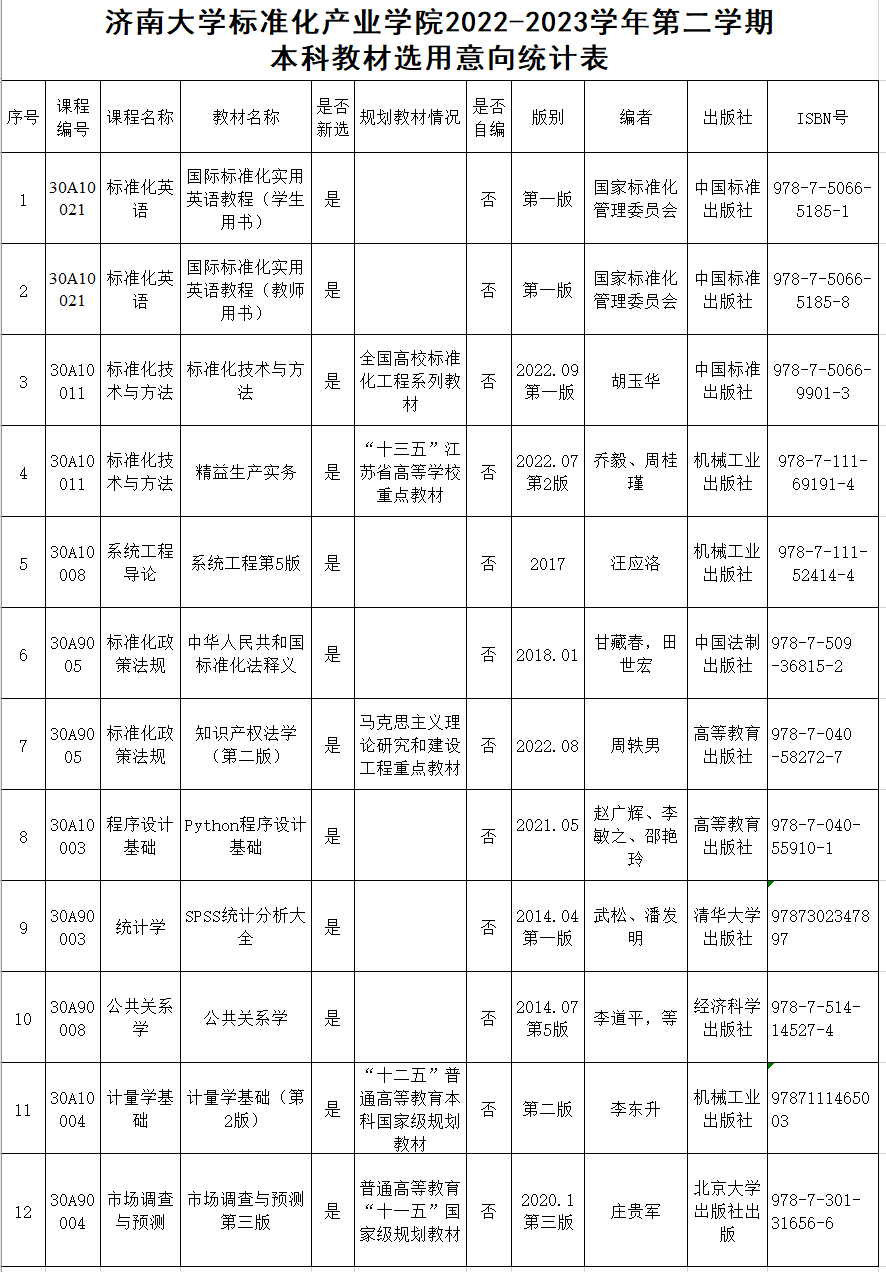 根据开云体育官网 要求,经课程负责人申请,开云体育官网 教材工作领导小组组织专家审查,已拟定开云体育官网 2022-2023学年第二学期本科教材选用表,现进行公示,时间三天,电话:82767972。