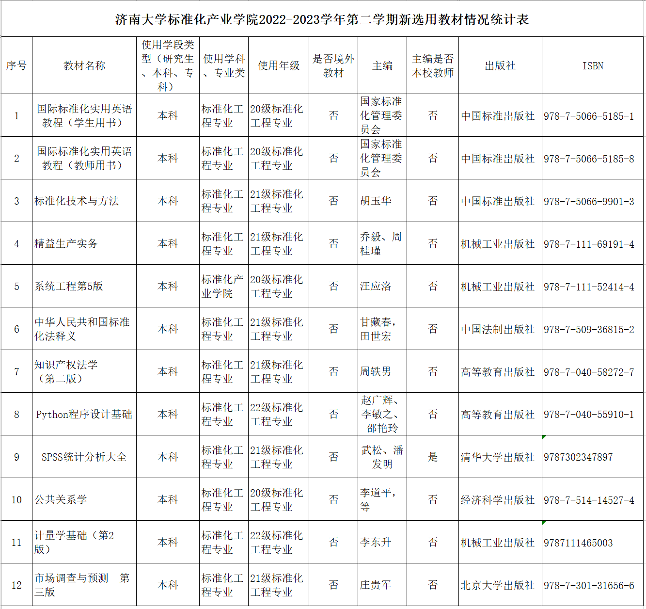 根据开云体育官网 要求,经课程负责人申请,开云体育官网 教材工作领导小组组织专家审查,已拟定开云体育官网 2022-2023学年第二学期本科教材新选用表,现进行公示,时间三天,电话:82767972。