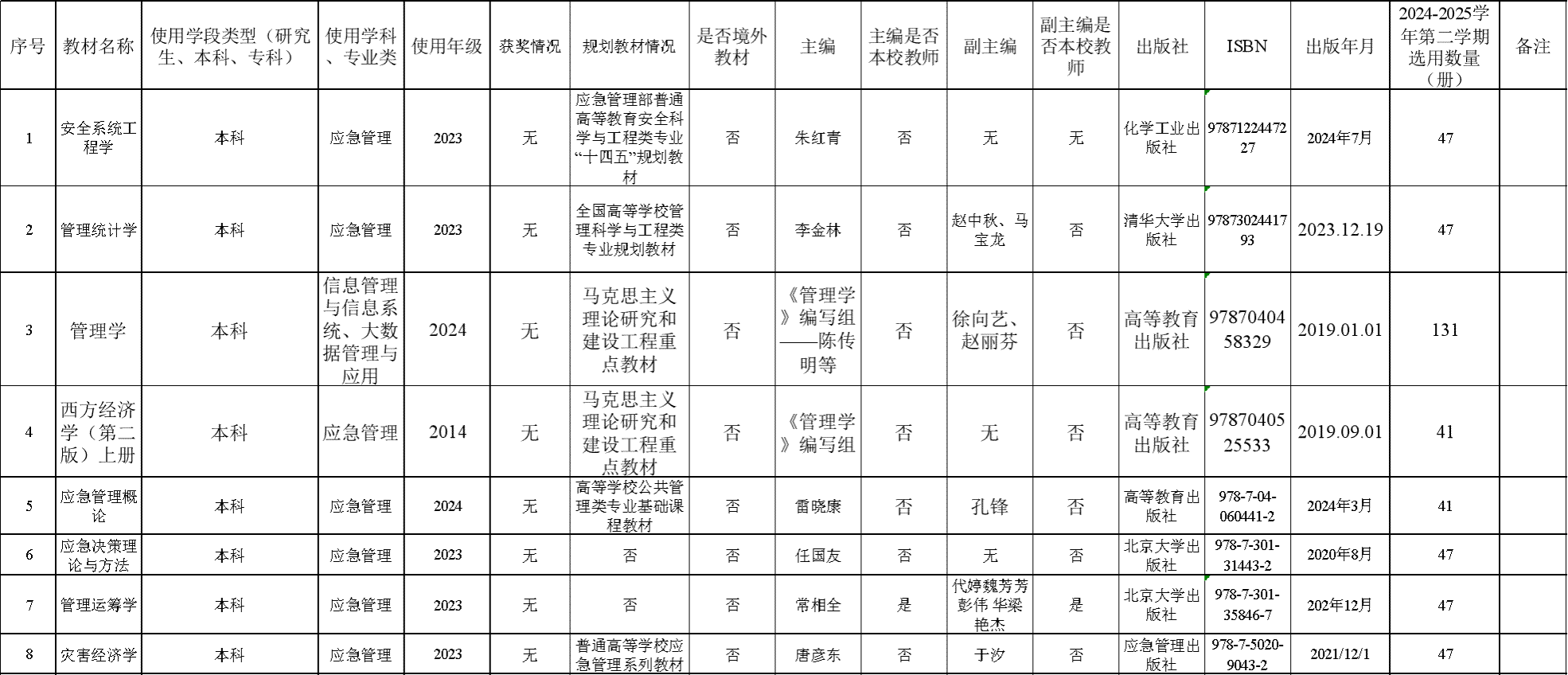 按照《开云体育官网 教材管理办法》(济大校字〔2021〕86号)文件要求,开云体育官网 教材工作领导小组遵循“凡选必审,质量第一,适宜教学,合理规范”的原则,审核了课程组负责人提交的新选用教材申请,拟同意征订新选用的8本教材。现予以公示,公示时间五个工作日。如有不同意见,请在公示期内向教学管理办公室(经管楼301西)提交书面意见。不接受匿名或电子邮件形式的质疑,逾期不予受理。
