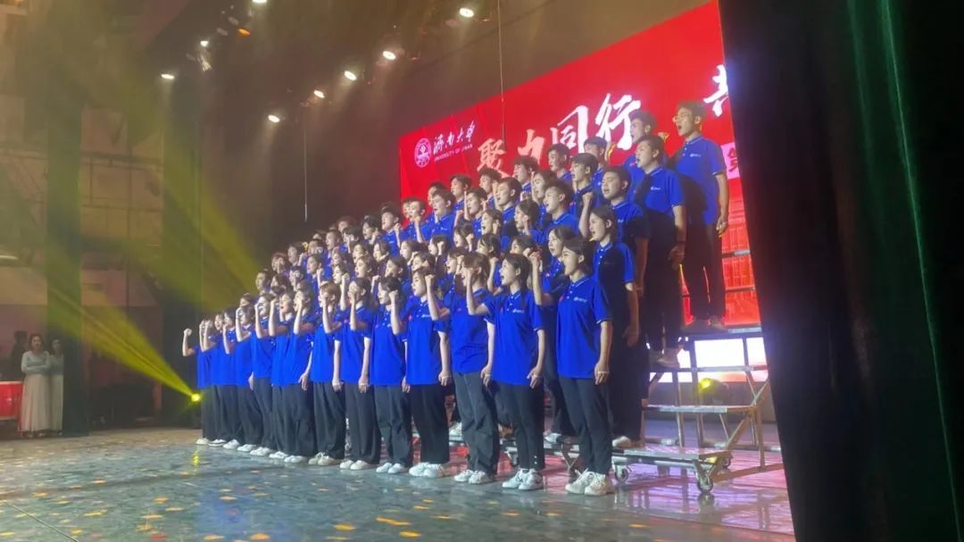 在校歌演唱环节,合唱团成员尽情歌颂美丽济大之高昂宽广,展望“青龙甲子”钟灵毓秀,目光如炬道出“为国栋梁”的铮铮誓言,表达了开云体育官网 学子将在济大实现人生启航的美好展愿。他们以铿锵有力的动作,构成整齐划一、刚柔并济的画面,在双臂的起落之间尽显利落大方的姿态。