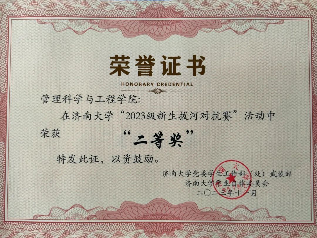 竞技拔河魅力现,团队荣誉笑逐颜。通过本次拔河比赛,同学们都认识到了团队合作精神和竞争意识的重要性。本次比赛也激励同学们在学习之余多进行体育锻炼,强身健体。同学们在比赛的激烈角逐和观众的热情助威中充分展现了青春的活力与激情,书写了凝神聚力的青春华章。目标矢志奋斗,愿同学们将赛场上的热血拼搏转化为勇毅前进的动力,一路奔跑,一路成长!