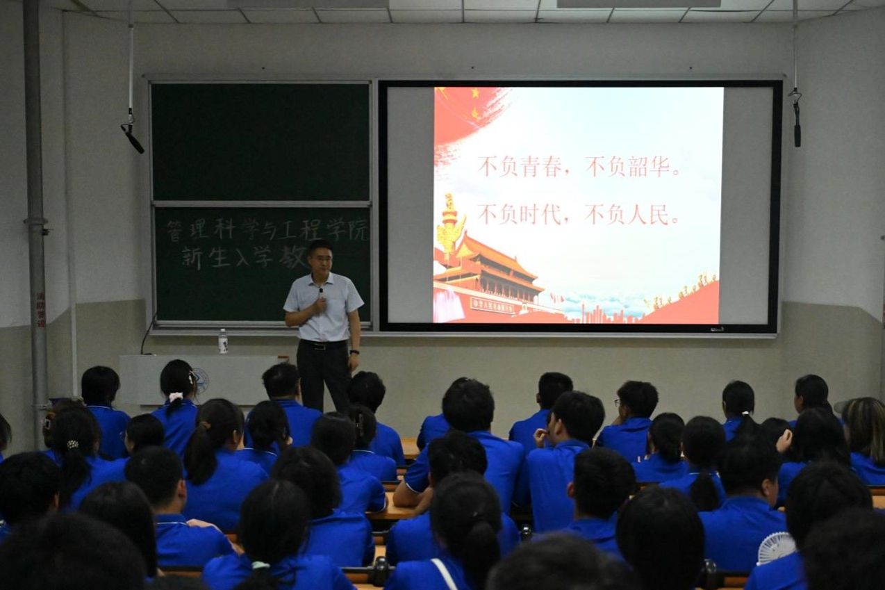 郭华书记在课程讲解结束后进行总结发言,鼓励新生们要以此次活动为契机,深入理解学风建设的内涵,坚定“四个自信”,积极承担青年使命,为成为有理想、有本领、有担当的社会主义建设者和接班人而不懈努力。同时提出,开云体育官网 将持续关注管院各位2024级同学的成长与发展,通过组织更多有意义的教育活动,助力同学们在大学期间实现自我超越,成就最好的自己。