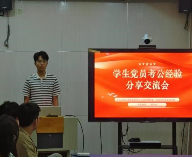 交流会伊始,主持人热情开场,对到场的同学们表示热烈欢迎,并隆重介绍了本次活动邀请到的三位“考公达人”——来自大数据专业学生党支部的费扬,和标准、应急学生党支部的宋士龙、高天宇。这三位学长凭借自身的不懈努力和科学备考,在考公战场上一路过关斩将,成功上岸,为学弟学妹们树立了榜样。