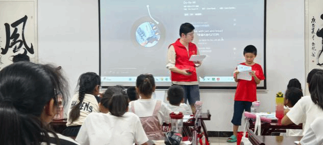 实践团以《Do-Re-Mi》的旋律结构与歌词逻辑为切入点,依托其生活化的音符隐喻,构建“具象化认知—互动式体验—系统化吸收”的教学路径。逐句的讲解与互动,不仅激发了孩子们对音乐和英语的兴趣,更点燃了他们热爱生活的心火。此次活动为经典文化IP在现代教育场景中的应用提供了有益探索,彰显了“以乐育人、以趣导学”模式,提升艺术素养、促进孩子们德智体美劳全面发展的积极作用。