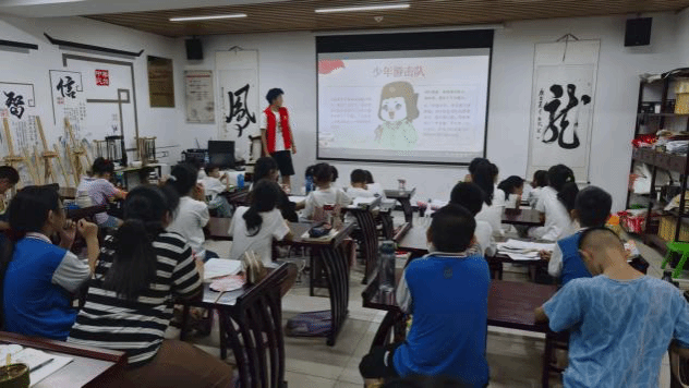实践团以红色故事为切入点,为孩子们筑牢红色根基。“少年游击队”讲述了苏保等孩童在亲人罹难后组建游击队、智斗敌人的英勇事迹;“放牛郎王二小”再现了13岁少年为保护乡亲、诱敌深入而壮烈牺牲的感人瞬间;“海娃鸡毛信”展现了12岁儿童团团长克服艰险、成功传递情报的智慧与勇气;“小侦察员张嘎”描绘了顽皮少年成长为英勇战士的蜕变历程;“两个小八路”讲述了孙大兴与武建华在敌后隐蔽斗争、默契配合的传奇;“朱德的扁担”则彰显了革命领袖与战士同甘共苦的崇高风范。一个个生动的故事,将孩子们带入爱国主义的海洋,点燃爱国热情,赓续红色血脉。