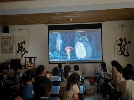 在翰墨轩文华书院,实践团成员与小朋友共同观看了日本动画大师宫崎骏的作品《龙猫》,为他们上了一堂生动的美育课。观影后,孩子们踊跃分享了自己的感受“龙猫就像我们身边的朋友”、“我们要关爱家人”、“一定要保护环境”……这些真挚的童言童语,不仅展现了孩子们对影片内涵的理解,也体现了优秀影视作品对青少年价值观的积极塑造作用。